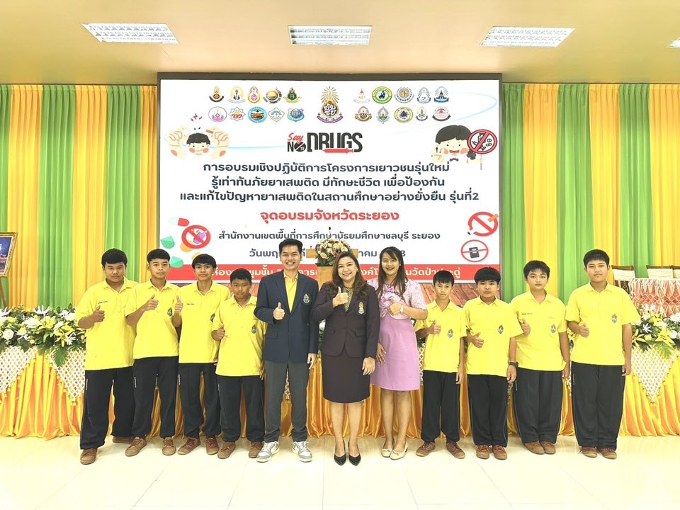 นางสาวณิชชา โตใหญ่ดี ผู้อำนวยการโรงเรียนเขาชะเมาวิทยาเข้าร่วมพิธีเปิดการอบรม โดยมี ดร.จตุพันธ์ รุจิรานุกูล รองผอ. สพม.ชลบุรี ระยอง เป็นประธานในพิธีเปิด การอบรมเชิงปฏิบัติการโครงการเยาวชนนรุ่นใหม่ รู้เท่าทันภัยยาเสพติด มีทักษะชีวิต เพื่อป้องกันและแก้ไขปัญหายาเสพติด รุ่นที่ 2 ณ โรงเรียนวัดป่าประดู่ อ. เมืองระยอง จ. ระยอง (จุดอบรมจังหวัดระยอง) การอบรมดังกล่าวมีวัตถุประสงค์เพื่อเพิ่มพูนความรู้แก่ครูและนักเรียนในสังกัด สพม.ชลบุรี ระยอง ป้องกันและแก้ไขปัญหายาเสพติดในสถานศึกษาอย่างยั่งยืน