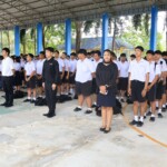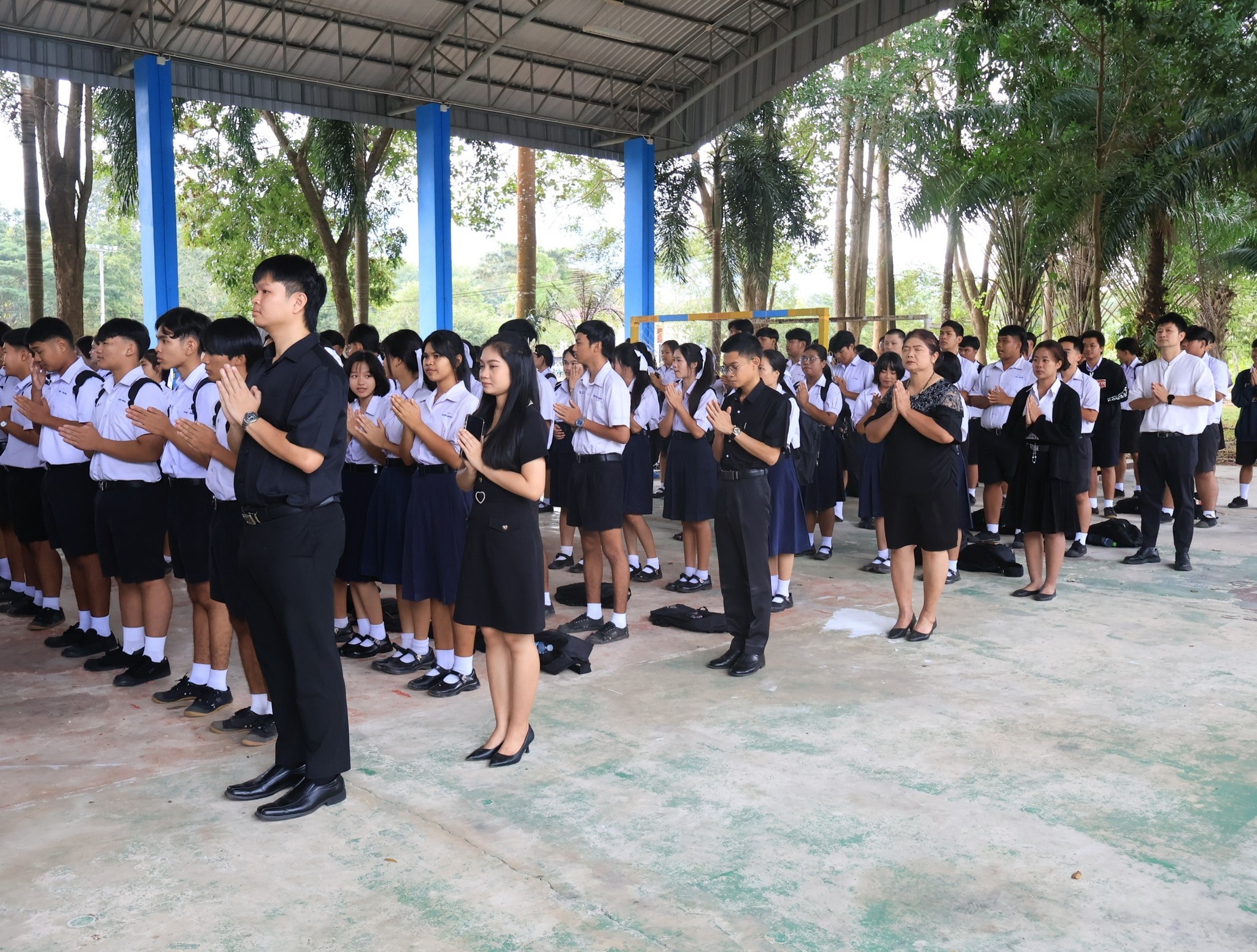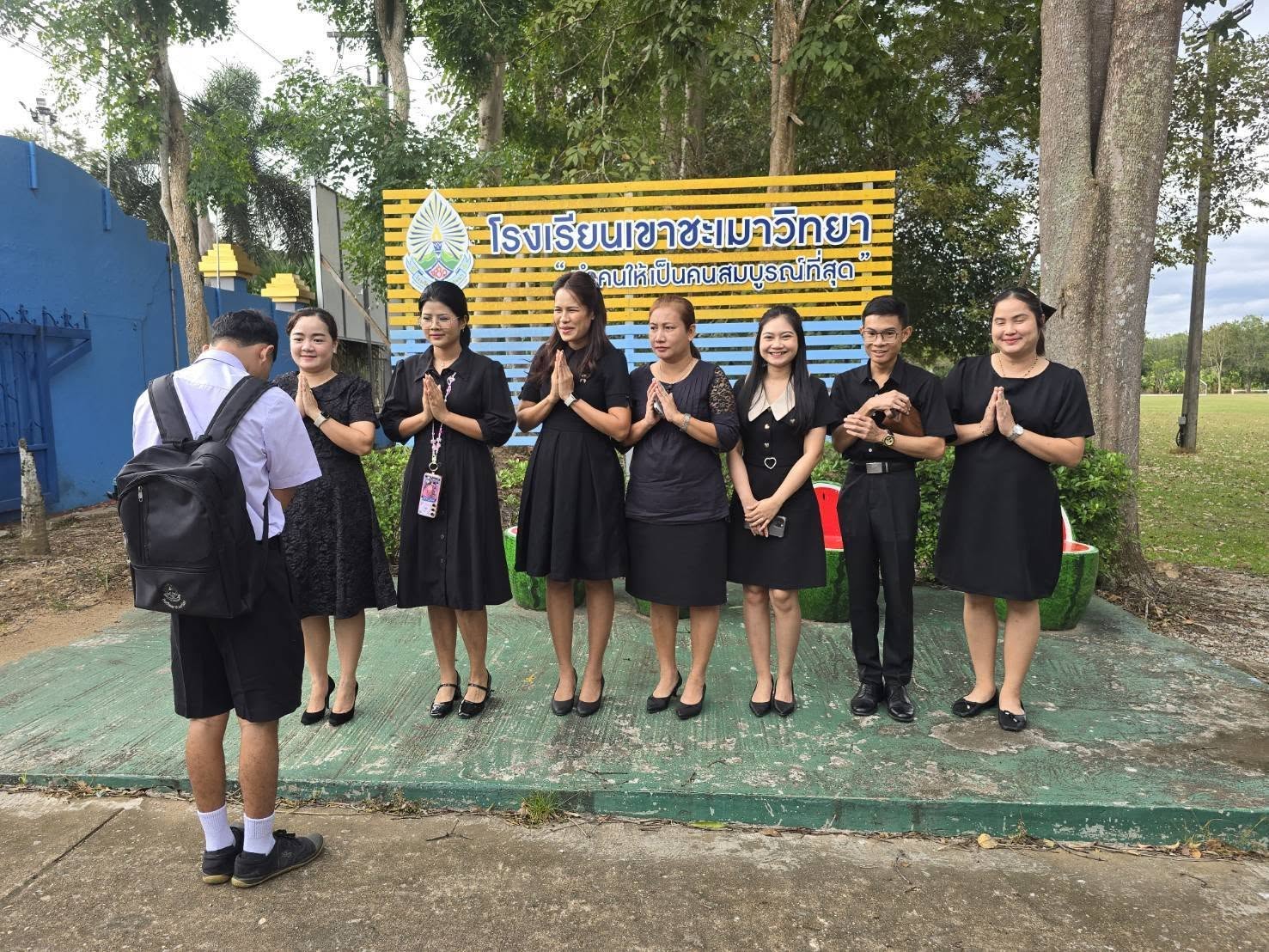 นางสาวณิชชา โตใหญ่ดี ผู้อำนวยการโรงเรียนเขาชะเมาวิทยา มอบหมายให้ นางพรรณีย์ มาอ่อน รองผู้อำนวยการโรงเรียน และครูเวรประจำวัน ร่วมต้อนรับนักเรียนกลับเข้าสู่รั่วเหลือง-ฟ้า ด้วยความอบอุ่น พร้อมทั้งให้โอวาทกับนักเรียน เพื่อเป็นการสร้างขวัญและกำลังใจในการเรียน